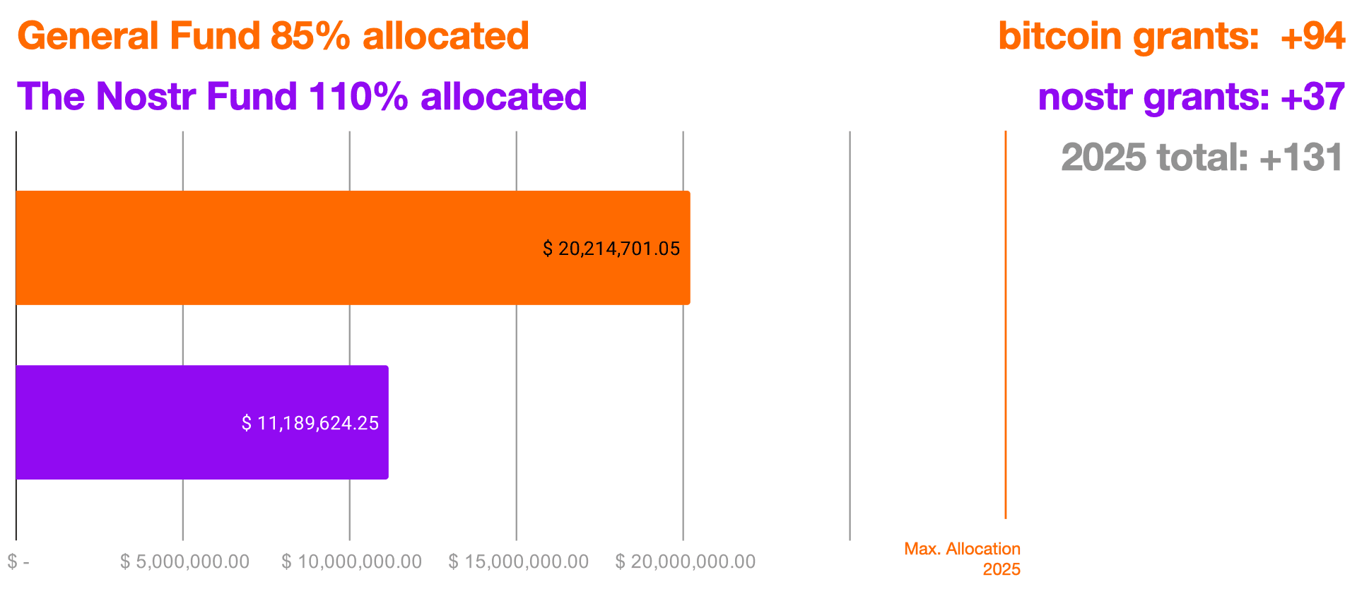 Since the introduction of our grant program in July 2023, we have allocated over $20,000,000 from the General Fund and over $10,000,000 from The Nostr Fund to open-source projects.