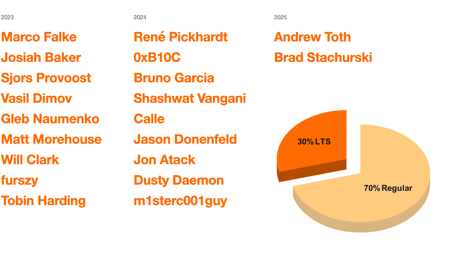 OpenSats exists because we want to see contributors to Bitcoin and free and open-source tools supported by a sustainable ecosystem and consistent funding. Our LTS program (long-term support) aims to do just that: support the best people for a multi-year period. Consequently, a lot of our funds are dedicated to our LTS grantees.